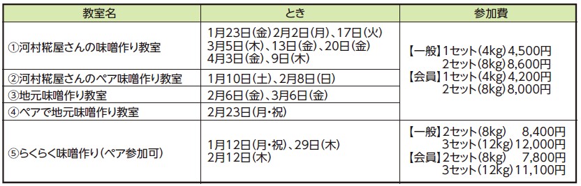 ※今年度より、全講座味噌の種類を「米みそ・麦みそ・合わせみそ」より選択できます。