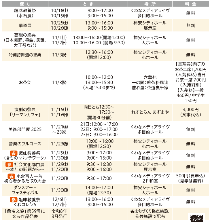 ※最新の情報は市文化協会ホームページ(QRコード((本紙PDF版19ページ参照)))をご確認ください。