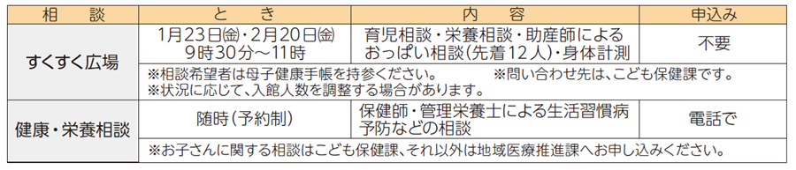 ※託児はありませんが、2月19日(木)の検診時のみ職員による見守りを行います(予約不要)。