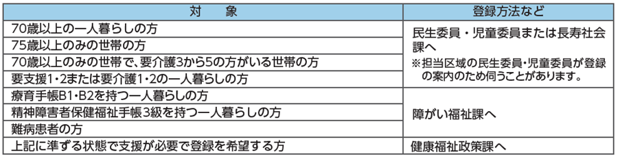 計画に記載された情報は、民生委員・児童委員、自治会長など避難支援等関係者が共有し、災害時の安否確認などに活用されます。