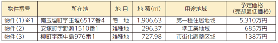 ※1:落札者の費用負担による水路の設置が売却条件です。詳細は管財課で配布する実施要領に記載します。