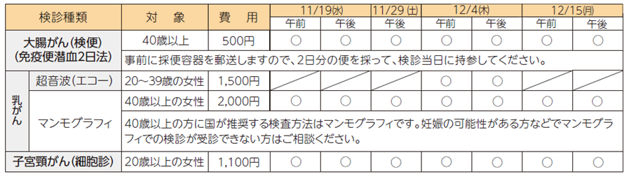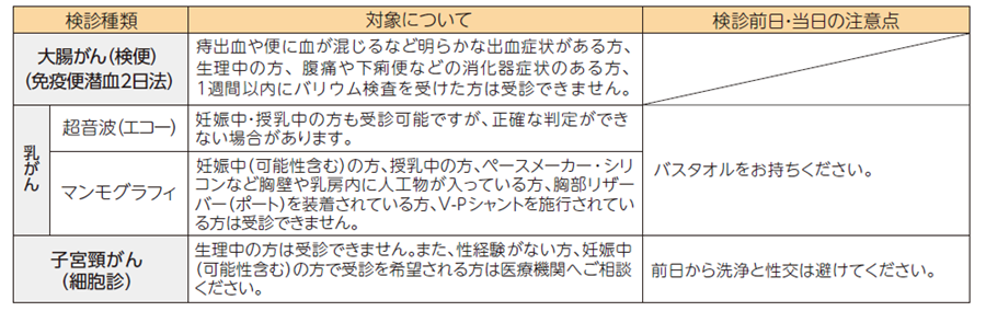※持病のある方は主治医にご相談ください。また、同じ種類の検診は、年度内に1回しか受けられません。