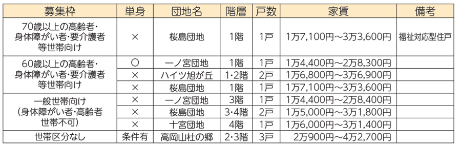 ※募集戸数、内容については、状況により変更する場合があります。