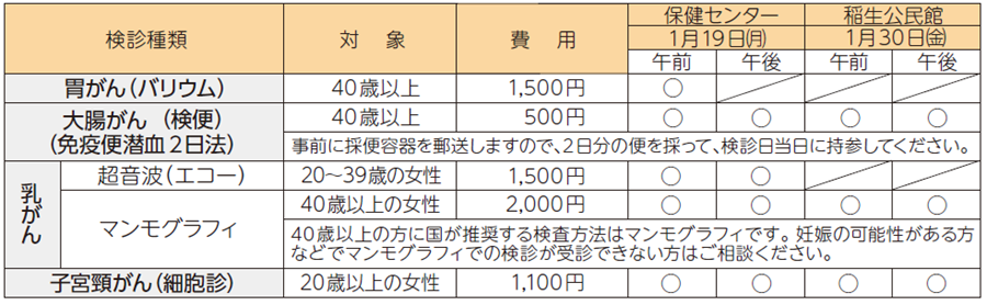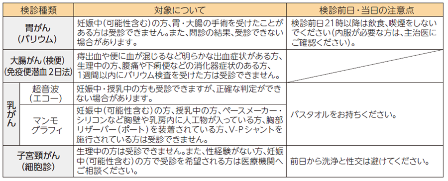 ※持病のある方は主治医にご相談ください。また、同じ種類の検診は、年度内に1回しか受けられません。