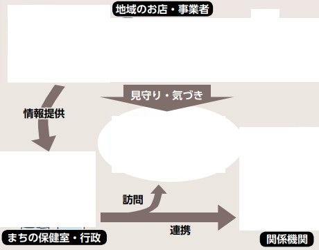 市では、お店の皆さんからの「気になる」情報を関係機関につなぎ、地域全体で安全・安心を支える「地域の見守り活動」の体制づくりを整えていくため、「地域の見守り活動推進事業」を進めていきます。