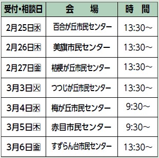場所:名張市役所1階大会議室 (土・日曜日、祝日は除く)