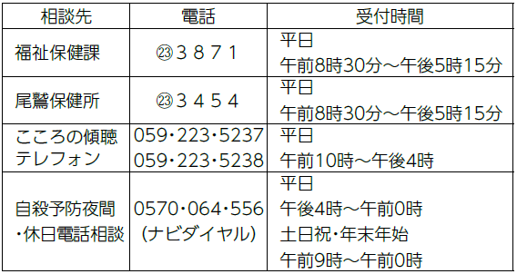 それでも不調が続く場合には、身近な人に気持ちを伝えてみませんか。もし身近に相談できる人がいない場合は、下記の相談先へ、あなたの思いをお話しください。