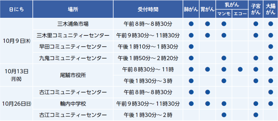 混雑を避けるため、実施日前2週間前頃に、受付時間のご案内をします。(受診票同封)