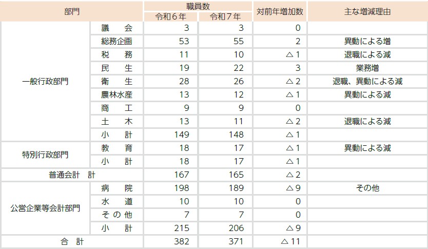 ■部門別職員数の状況と主な増減理由
