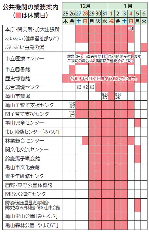 ■市の一般業務は、12月26日(金)まで・令和8年1月5日(月)から