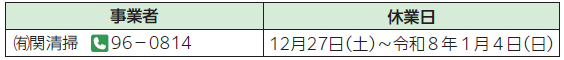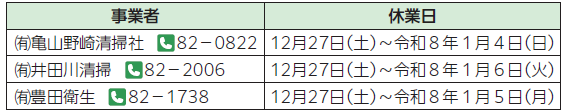 ■年末年始のし尿汲み取り事業者の休業日
