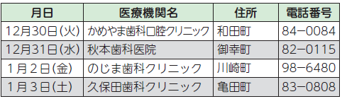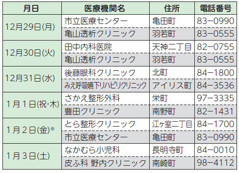 ■年末年始の救急医療は、当番医制で対応します