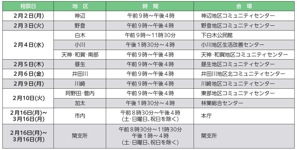 市では、次の日程で申告相談を受け付けます。申告書作成に必要な書類を持参の上、少人数でお越しください。