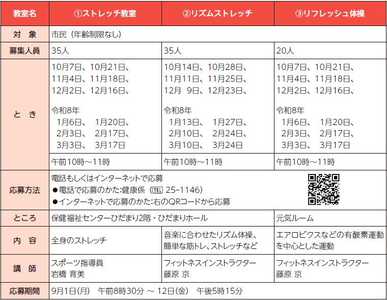 ■運動教室(10月~令和8年3月分)の参加者を募集します