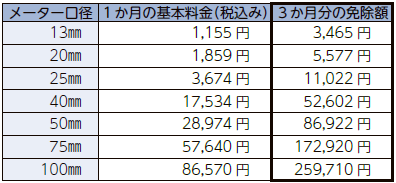 ▽口径別の基本料金免除額