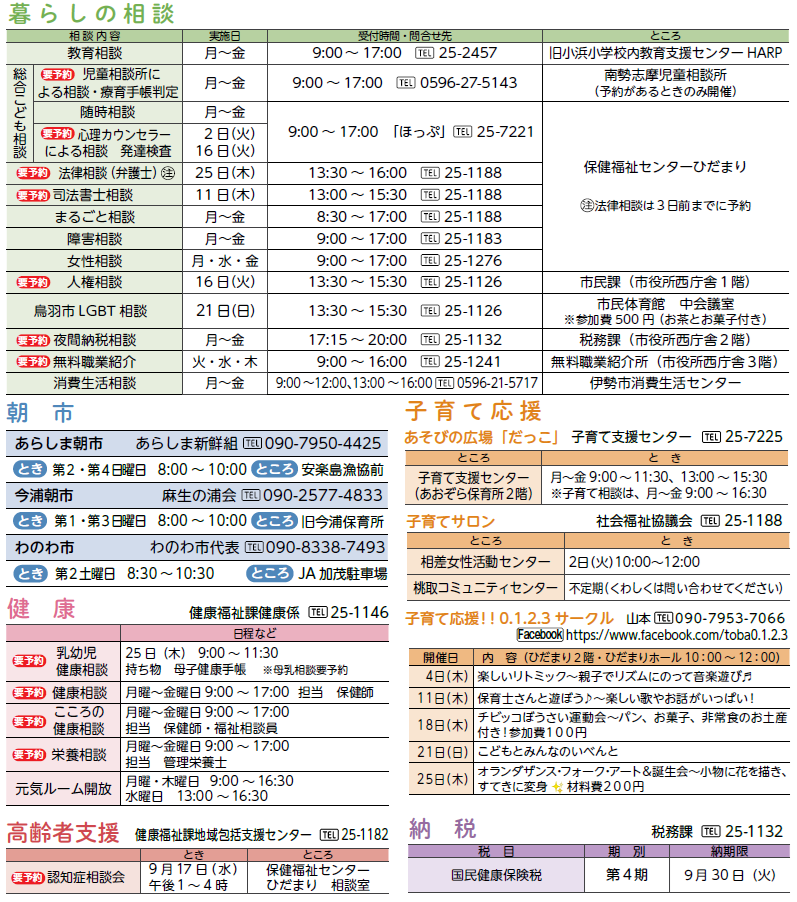 くらし 9月(September)生活カレンダー 34/36 前の記事 次の記事 発行日 : 2025年09月01日 自治体名 : 三重県鳥羽市 広報紙名 : 広報とば 令和7年9月1日号 Tweet シェアする 市の人口 編集後記 広報マン