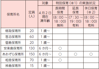 (※3)船津保育所は令和9年4月に安楽島保育所へ移転統合するため、令和8年度は新入所児募集を行いません。