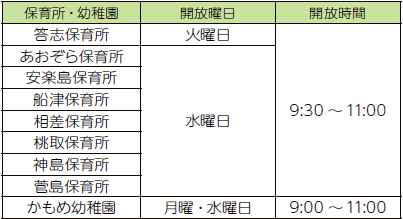 開放場所:園庭(幼稚園は園庭・絵本の部屋)