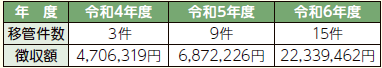 平成16年の機構設立以降、移管した案件は延べ約200件で、徴収額は約3億円となっています。