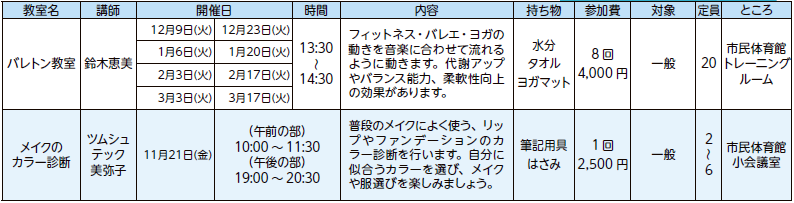 スポーツ 令和7年度 鳥羽市運動施設自主事業 参加者募集 17/42 前の記事 次の記事 発行日 : 2025年11月01日 自治体名 : 三重県鳥羽市 広報紙名 : 広報とば 令和7年11月1日号 申込方法:市民体育館へ電話で申し込んでください。 その他:※申し込みが少ない場合は、中止することがあります。 11月1日(土)より受付開始!! 問合せ:市民体育館 【電話】25-6215 Tweet シェアする 食べて元気に!! vol.2 文化事業