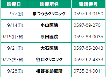 ■紀南医師会 休日当番医