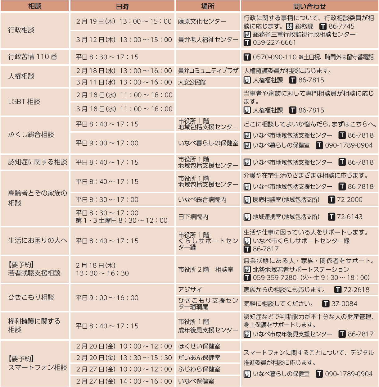 くらし 各種無料相談 17/21 前の記事 次の記事 発行日 : 2026年02月01日 自治体名 : 三重県いなべ市 広報紙名 : いなべ市情報誌 Link 2026年2月号(vol.267) Tweet シェアする 子育てインフォメーション 編集後記