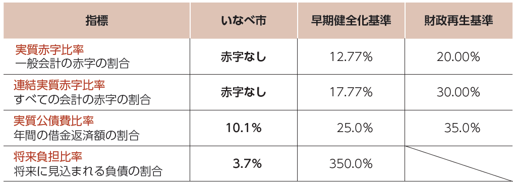 財政健全化判断比率とは、自治体の財政状況が良好かどうかを、標準財政規模に占める割合で示す指標です(表3)。4つの指標があり、今のところいずれも危険な水準を大きく下回っており、健全な状況です。