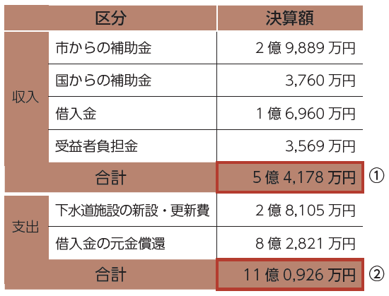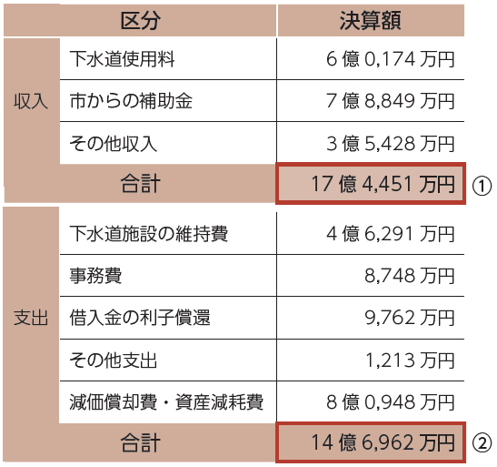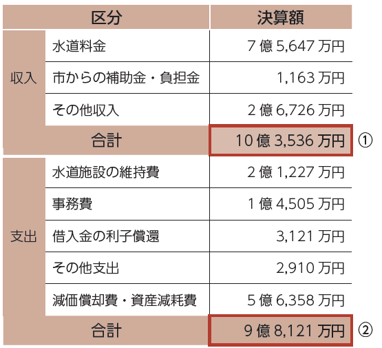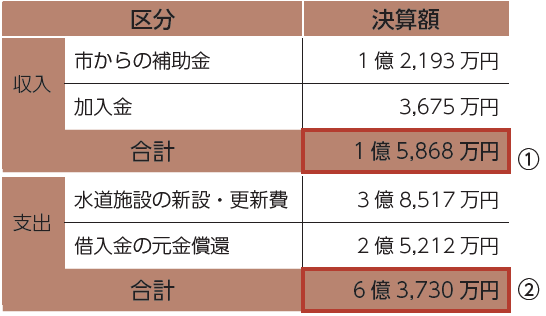 (収入-支出)で出たマイナス分は、過年度分損益勘定留保資金などで補てんしています。