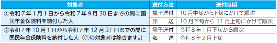 ◆社会保険料(国民年金保険料)控除証明書の送付時期