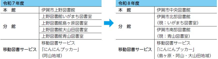 また、伊賀市南部図書館の開館時間などを次のとおり変更します。