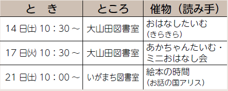 絵本の読み聞かせや紙芝居、手遊びなどをします。