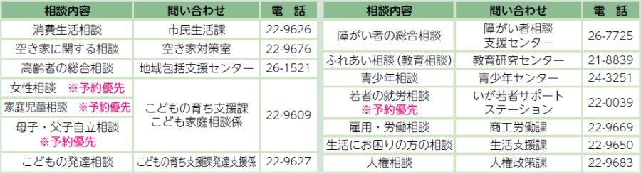 暮らしのいろいろな問題と悩みごとについて相談をお受けします。詳しくは市ホームページをご覧ください。