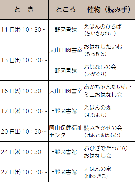 今年度、青山子育て支援センターで開催している「おはなし会」の9・11・1・3月を担当しています。