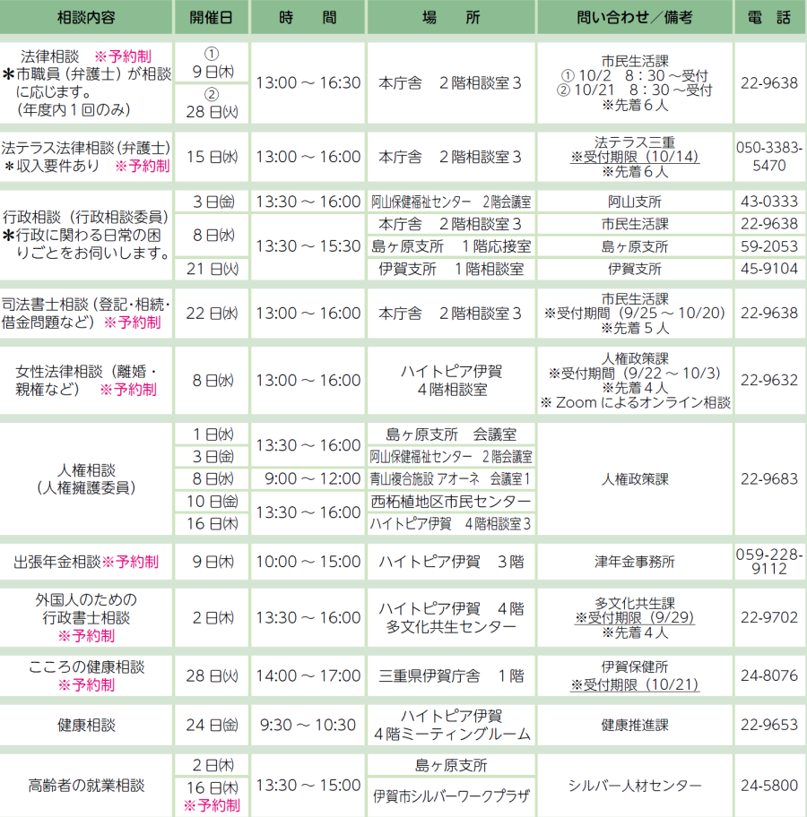 ■10月の無料相談