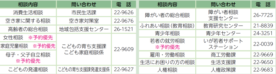 暮らしのいろいろな問題と悩みごとについて相談をお受けします。詳しくは市ホームページをご覧ください。