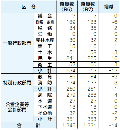 ◇部門別の職員数(各年4月1日現在の常勤職員 単位…人)