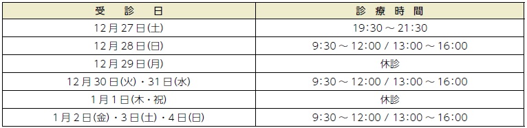 ・診療終了時間の10分前にはお越しください。なお、発熱がある場合は事前にご連絡ください。