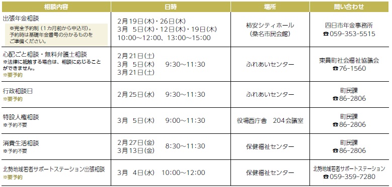 くらし 相談案内 20/27 前の記事 次の記事 発行日 : 2026年02月06日 自治体名 : 三重県東員町 広報紙名 : 広報とういん 令和8年2月号 Tweet シェアする 子育て情報ガイド お知らせ(1)