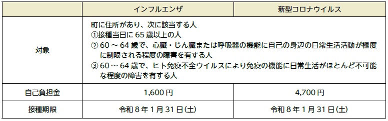 インフルエンザや新型コロナウイルス感染症の重症化を防ぐため、ワクチンを接種しましょう。高齢者には費用の一部を助成します。