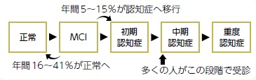 もの忘れ外来は、加齢による自然な記憶力の低下か認知症・軽度認知障害(MCI)かを診断し、適切な治療に繋げることを目的とした専門外来です。認知症は進行すると回復が難しいため、症状が軽いうちに治療を始めることが重要です。MCIの段階では回復の可能性があり、また認知症に似た症状でも別の病気が隠れていることもあるため、早期診断が非常に大切です。しかし、多くの人が初期~中期認知症の段階で、初めて医師の診断を受けているのが現状です。