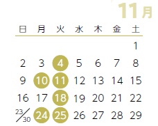 ●印が休館です(毎週火曜・第2月曜・最終月曜)