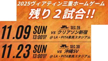 ヴィアティン三重は東員町にホームスタジアムを持ち三重県を拠点にJリーグ入りをめざして活動するサッカークラブです。このコーナーではヴィアティン三重の試合情報などをお知らせします!