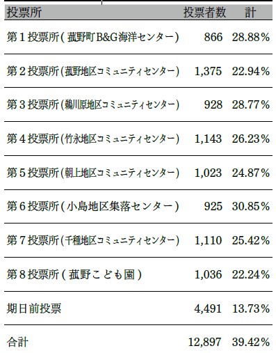 三重県知事の辞職に伴う三重県知事選挙(8月21日告示)が9月7日に行われ、即日開票されました。町内の投票率は39.42%で、令和3年9月に行われた前回の三重県知事選挙の39.22%から0.20ポイント上がりました。