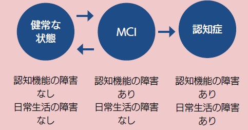 認知症と診断される一歩手前の状態をMCI(軽度認知障害)といいます。放っておくと認知症に進行してしまいますが、予防をすることで健常な状態に戻る可能性もあるため、適切な対策を行うことが重要です。