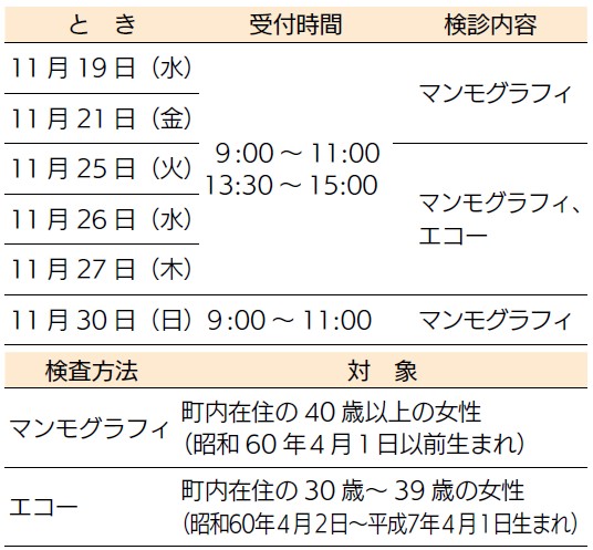 ※町内に住民登録のある対象者には11月中に案内を送付します。
