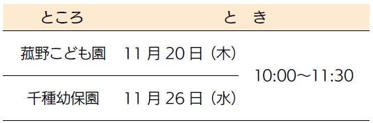 10:30~10:45 赤ちゃん体操、親子ふれあい遊び(2回目)
