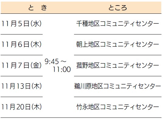 ※体操は同じ内容で2回実施します。都合の良い時間帯にお越しください。
