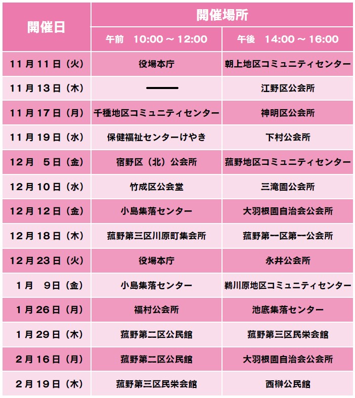 ・講座内容は全て同じです。会場、日程をいずれか1日選んでご参加ください。