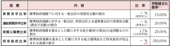 ※3 将来負担比率…将来負担が見込まれる負債が基金残高などより小さいため「-」と表示します。