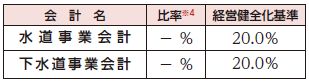 資金不足比率とは、事業の規模に対する資金不足額の割合を示すもので、水道事業会計と下水道事業会計の経営状況を判断するための比率です。